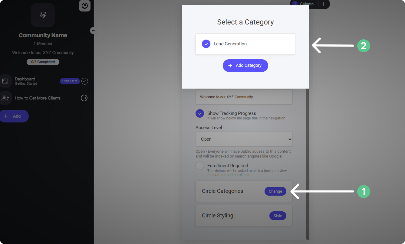 Now that you’ve set up a category for your Circle, you can take it a step further! Use the Circle Widget to seamlessly integrate your Circle into any page, blog, funnel, or even another Circle, giving your community easy access wherever they need it.