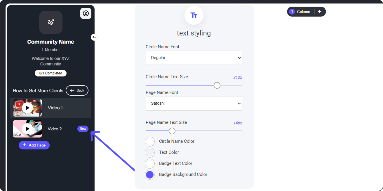 The Text Styling option helps you maintain a consistent brand identity across your Circle by allowing you to use your own font types throughout. You can fine-tune the Circle Name Font, Page Name Font, and text sizes to match your branding.