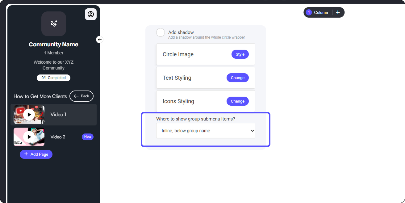 When adding subpages to a group, you have three different ways to display submenu items, allowing you to tailor the navigation experience to best fit your Circle's structure and user preferences.