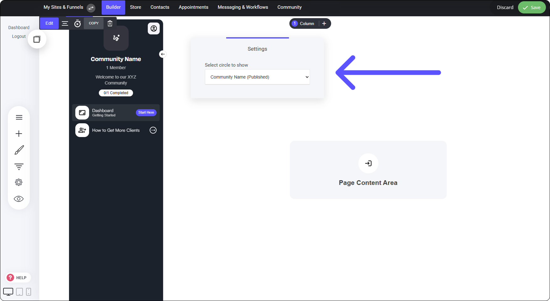 CirclesAs mentioned, the Circle widget can be added to any page, blog post, funnel step, and more by simply dragging it into position on the editing canvas.