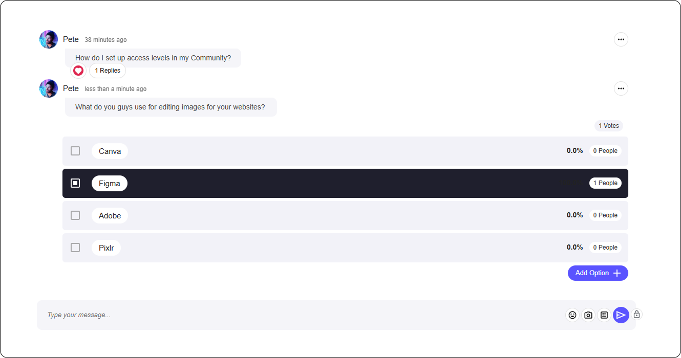 When creating polls, you have complete control over how members interact, ensuring polls align with your specific needs.