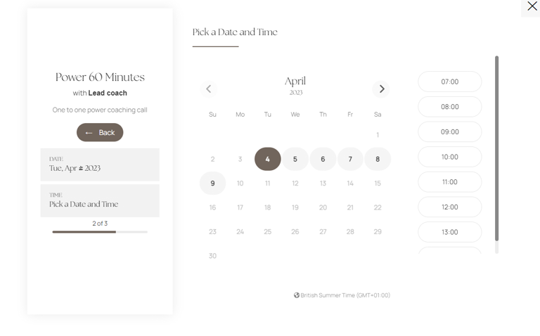 Once the visitor has clicked on any button on the landing page, we are using a simple pop up to display the booking widget. Upon making an appointment hey will move on to the final step.