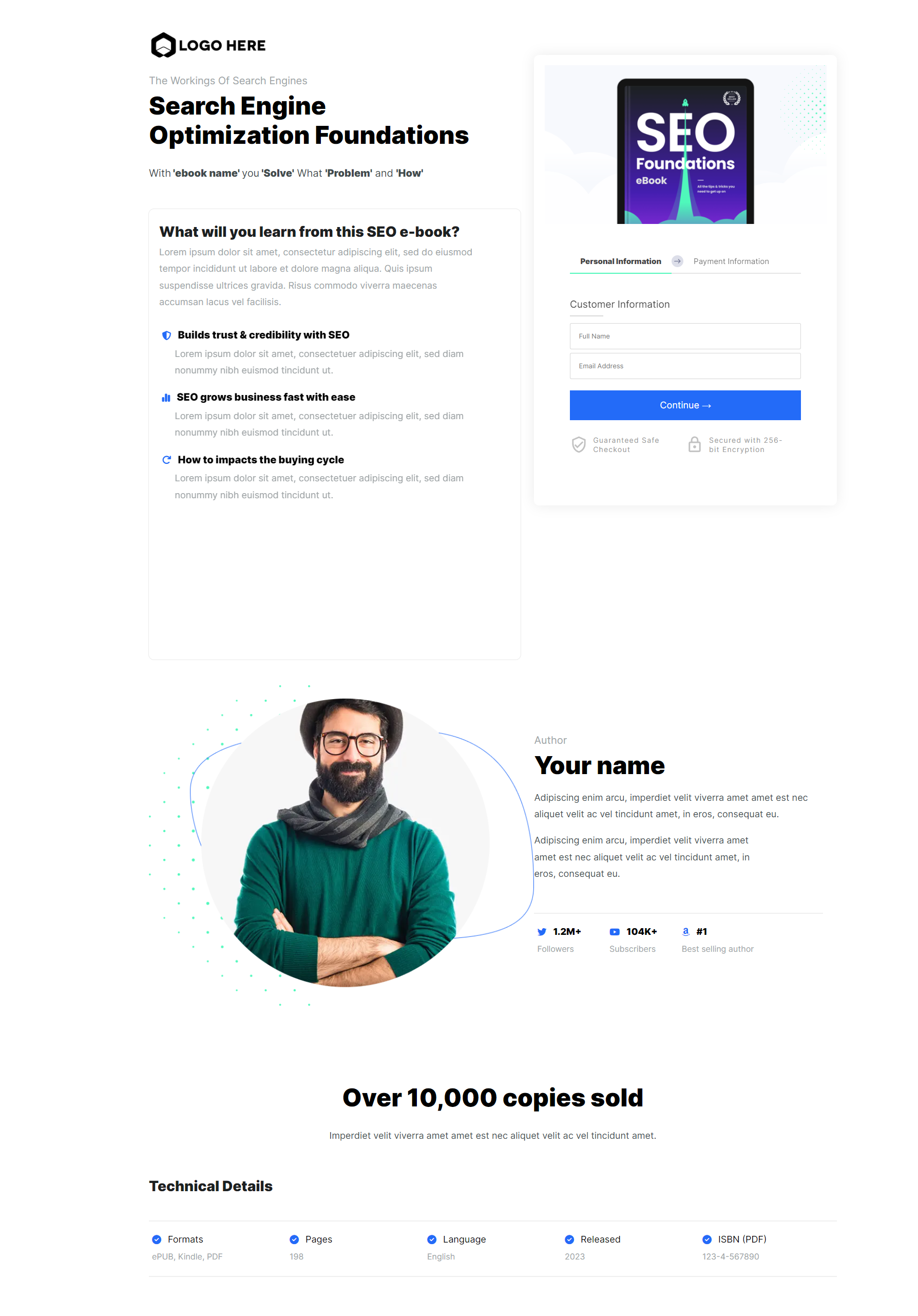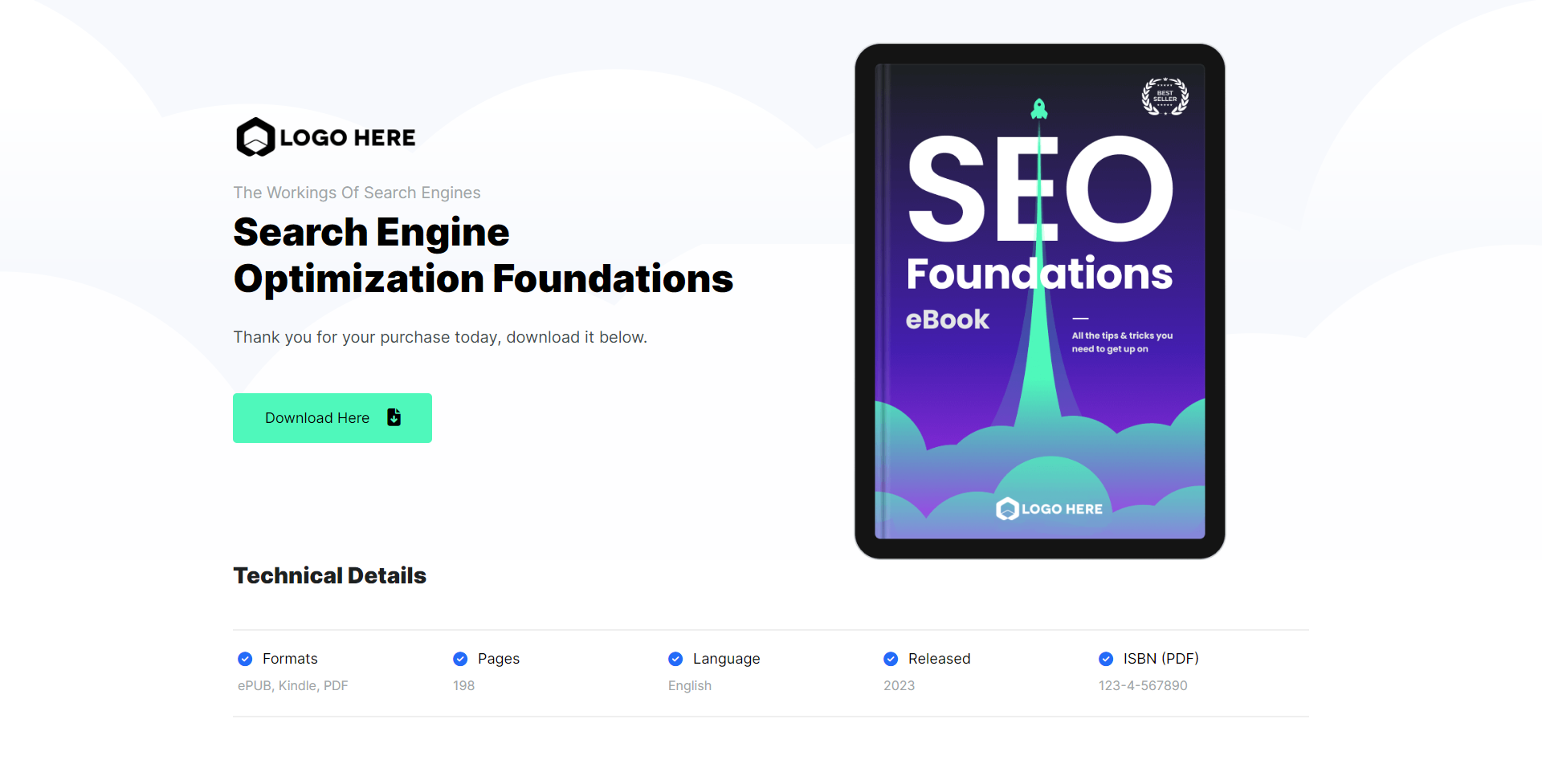 The format and layout design for the digital download funnel is broken down into multiple containers ensuring that all information is displayed correctly and most of all clear to read and understand. You will notice that in all our templates that we have added simple text to assist you what to write.