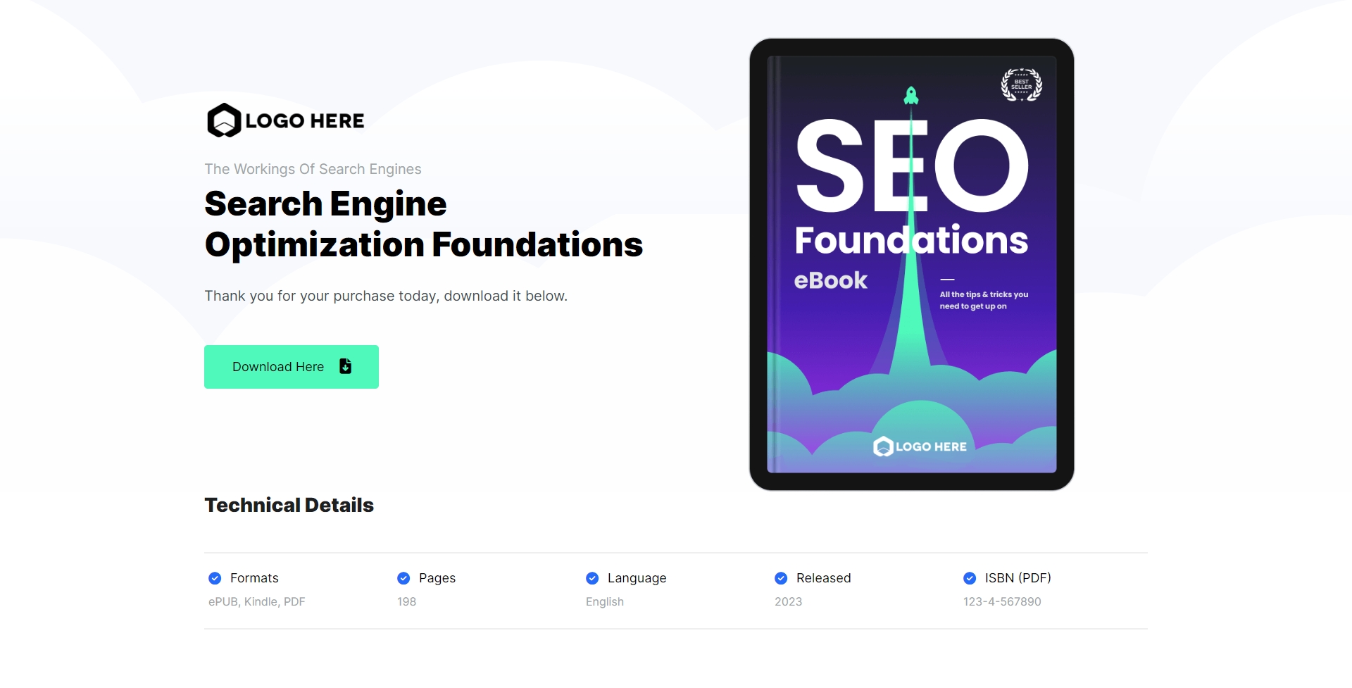 As mentioned above. After users successfully complete the checkout process, they are redirected to a thank you page. This page should confirm their purchase, provide details on next steps, and offer any additional resources or bonuses. It is also an opportunity to upsell other courses or related products. Additionally, the thank you page should include a call to action button to download the digital file.