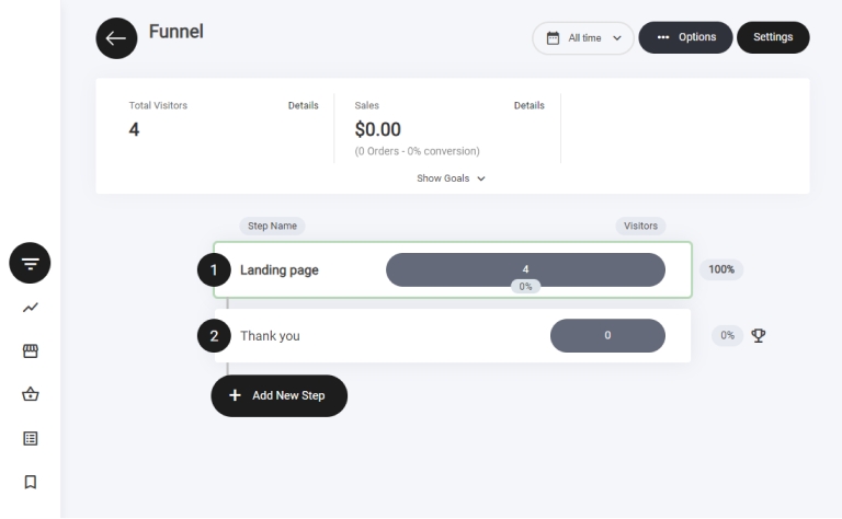 Visible in Analytics Tab – All funnel goals can be tracked within the Funnel Analytics section.