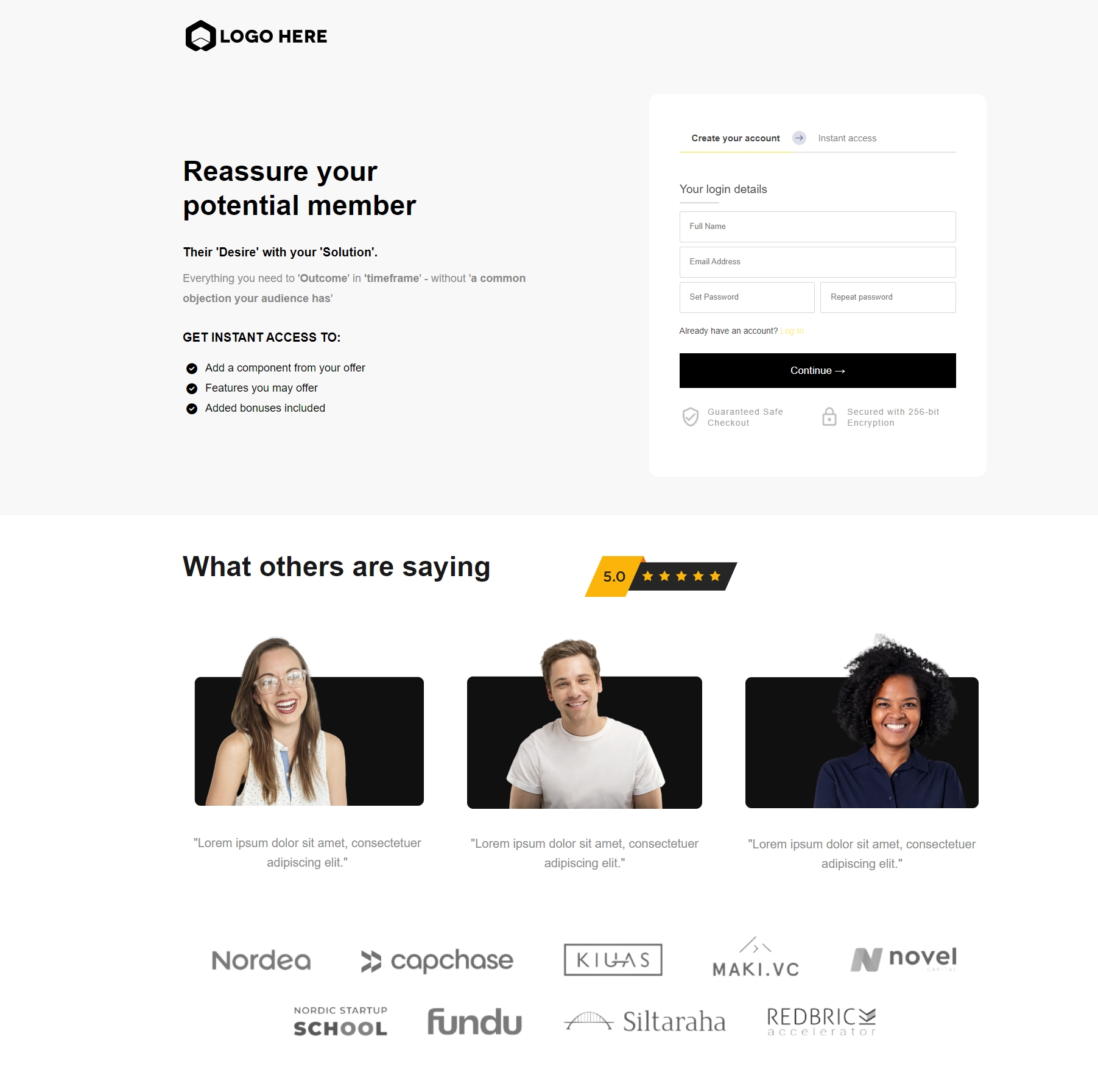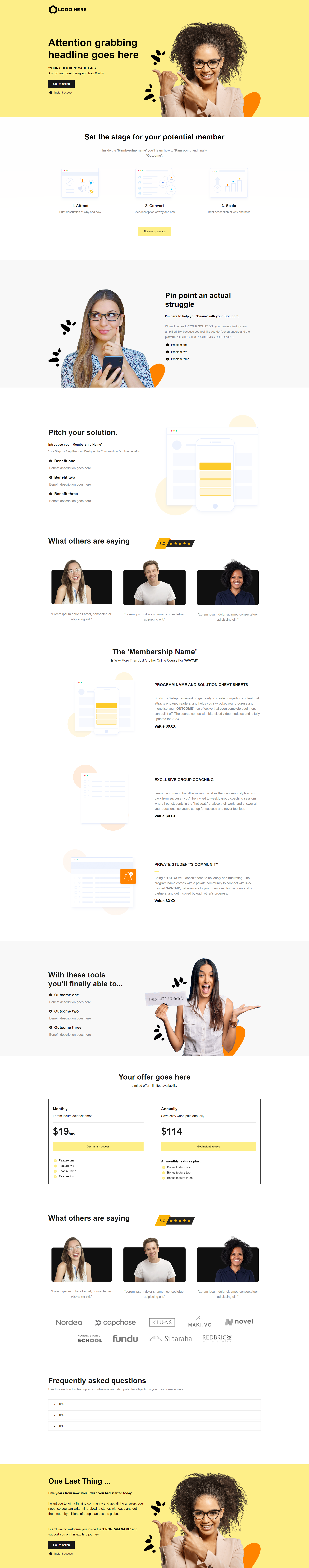 The format and layout design for the membership funnel is broken down into multiple containers ensuring that all information is displayed correctly and most of all clear to read and understand. You will notice that in all our templates that we have added simple text to assist you what to write.