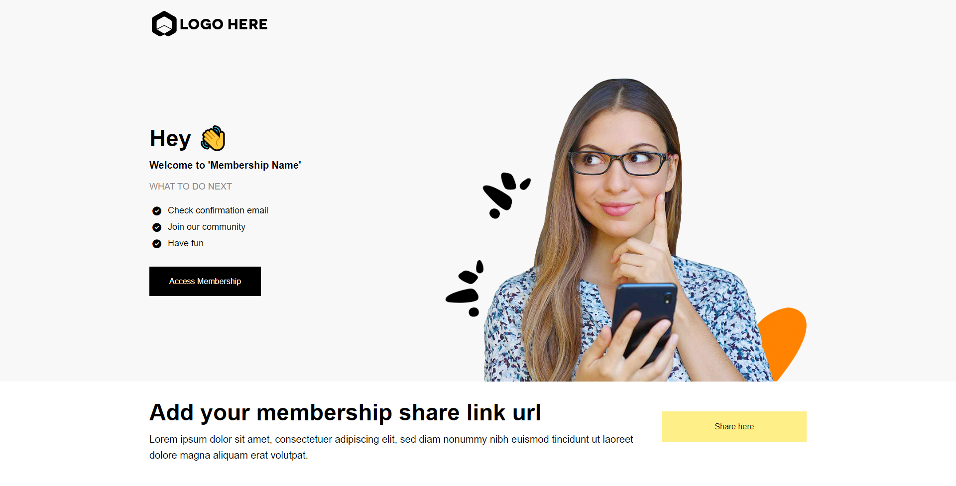 Step 3: Thank you page - After the member has completed the purchase, they are directed to the thank you page. This page confirms the membership purchase and provides a call-to-action (CTA) for the member to access the membership area.