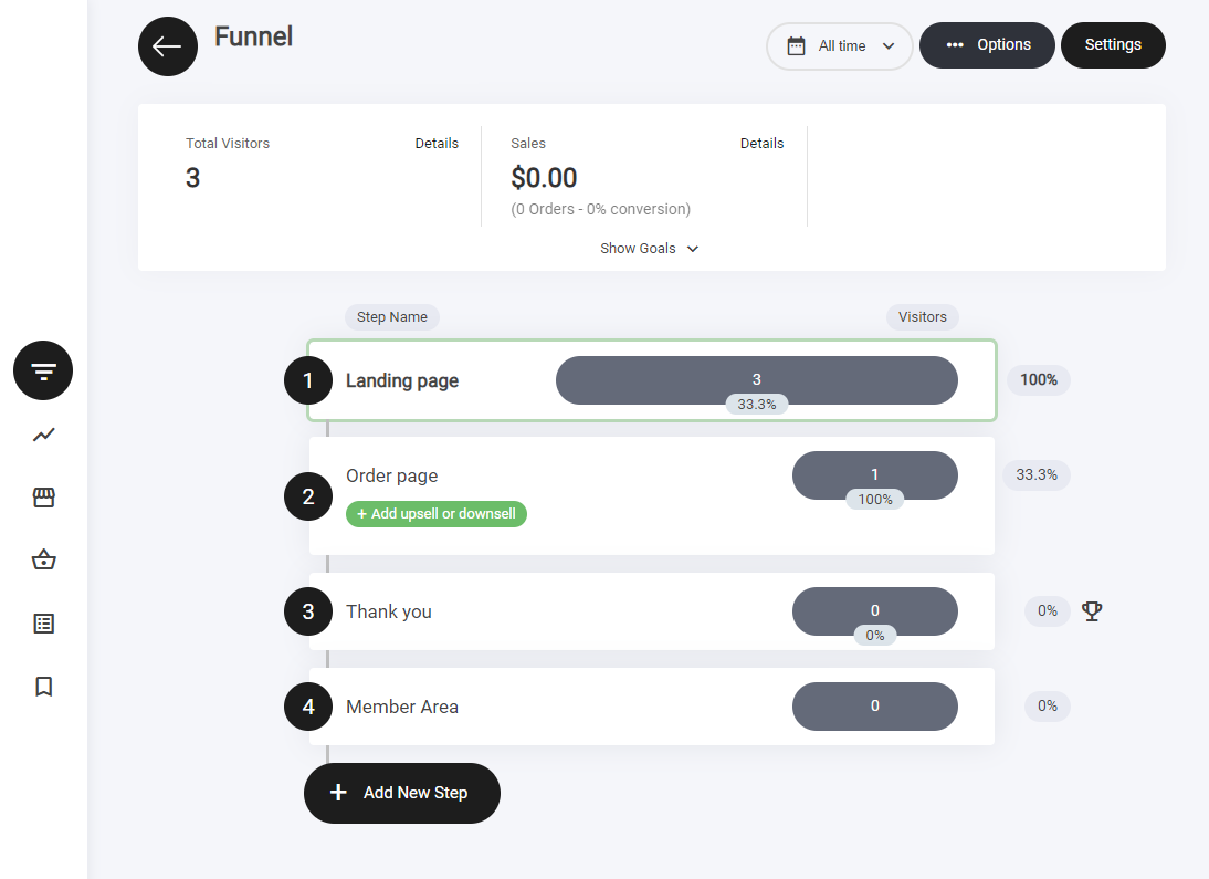 The below image displays the 4 step funnel within the builder it's self. As you can see, you have a all the required steps to make it function for you.
