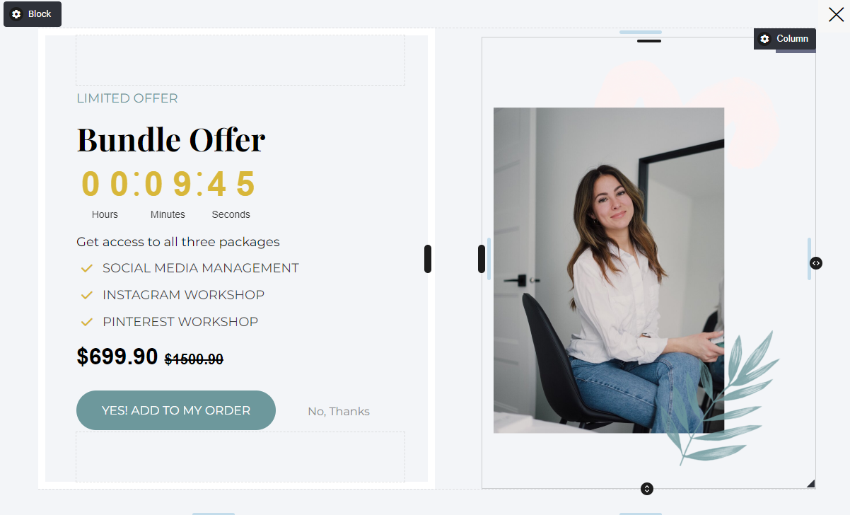 Step 3: Checkout with upsell: The third step of the funnel is the checkout page, where users can purchase the offer or incentive. The checkout page should include a clear and concise form where users can enter their payment information. Additionally, we included an upsell product, which is a product that is complementary or an upgrade to the main offer. The upsell product should be presented as a limited-time offer and should provide significant additional value to users.