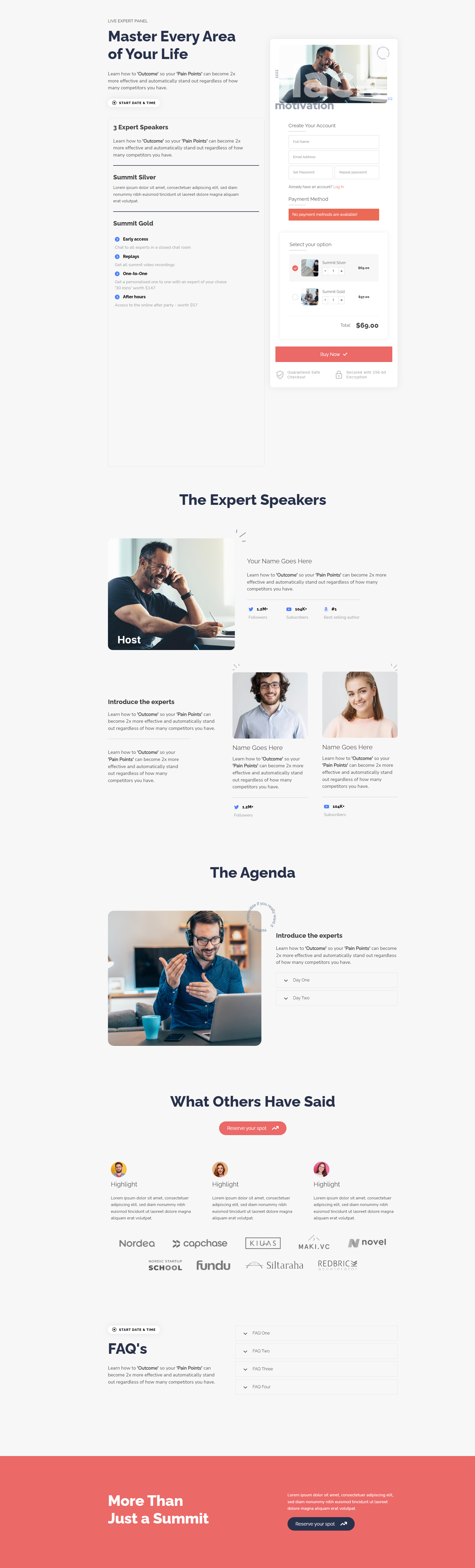 Step 1: Landing page - This is the first page the potential attendee sees when they click on an advertisement or link. The landing page's primary goal is to grab the visitor's attention and encourage them to register for the virtual summit. This page typically provides information about the summit content, including the date, time, and location, the list of speakers attending, the topics that will be covered, and answers to commonly asked questions.