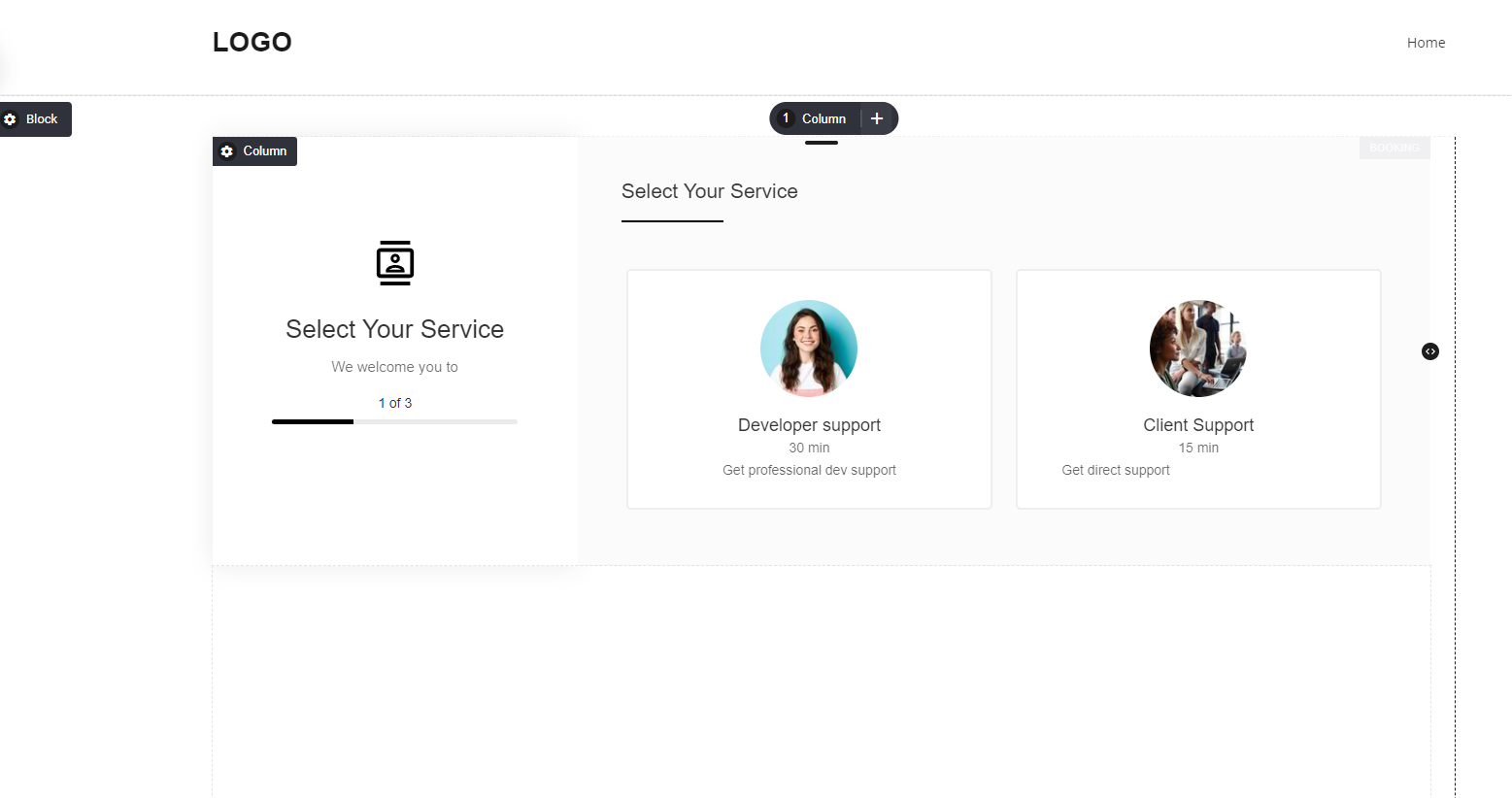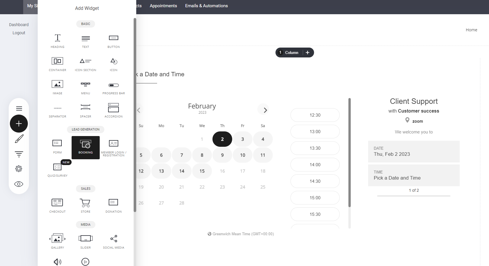 There are multiple ways you can get people to book with you, the best way is to add the booking widget on any page or funnel step you like as shown below.