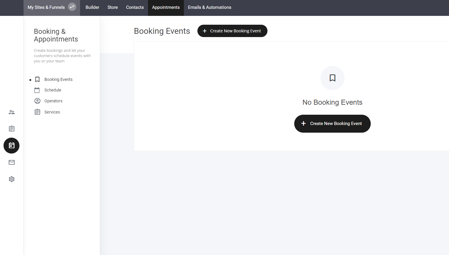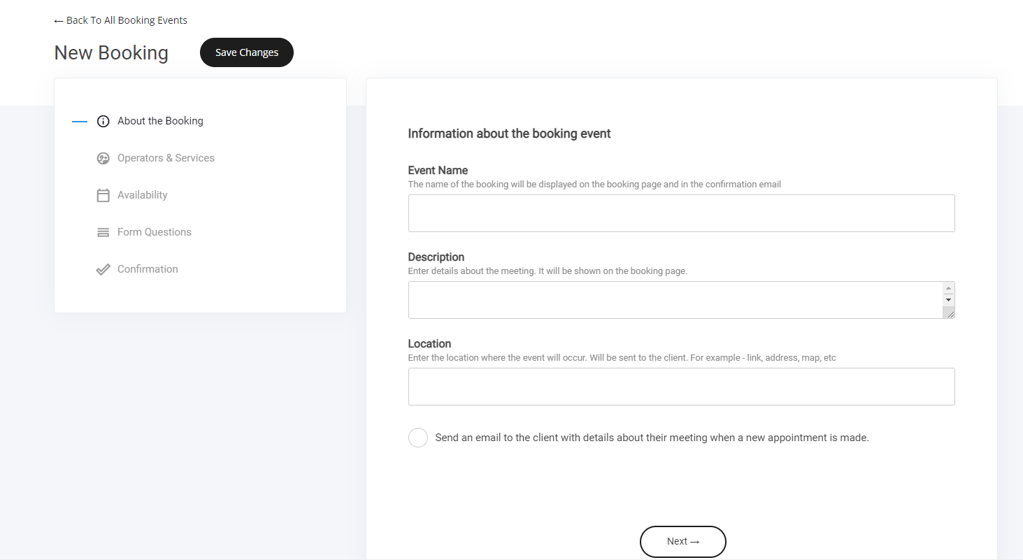 Select "Create New Booking" – Begin setting up your event.