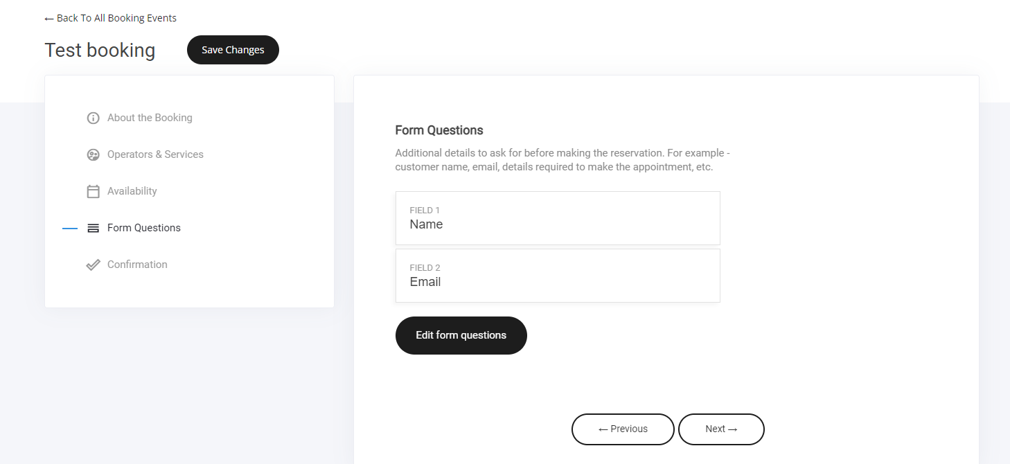 Additional details to ask for before making the reservation. For example - customer name, email, details required to make the appointment, etc. You can also add any custom fields or even create your own.