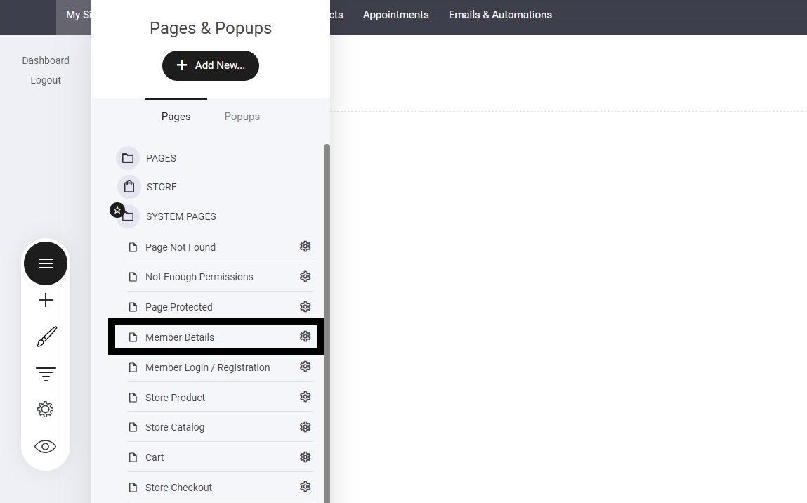 Members are allocated a membership management page automatically. To modify your members management page: Go to System pages and select Members details. As shown below.