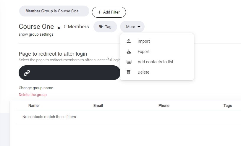 Once you have created your group, the next stage is to select where the members will be re-directed to after: