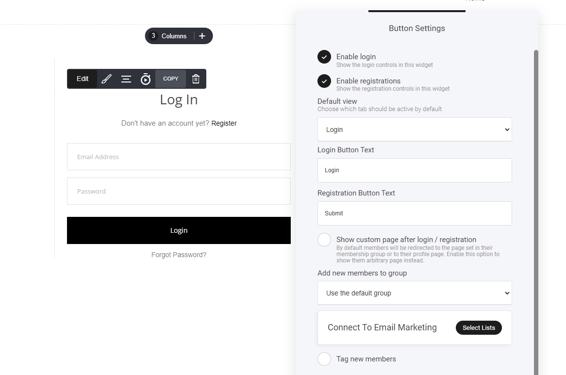 In some instances you may require to add a user to a membership area via a form on your website, funnel or landing page. Simply create your form and add the desired membership group you want them to be added to. As shown below.