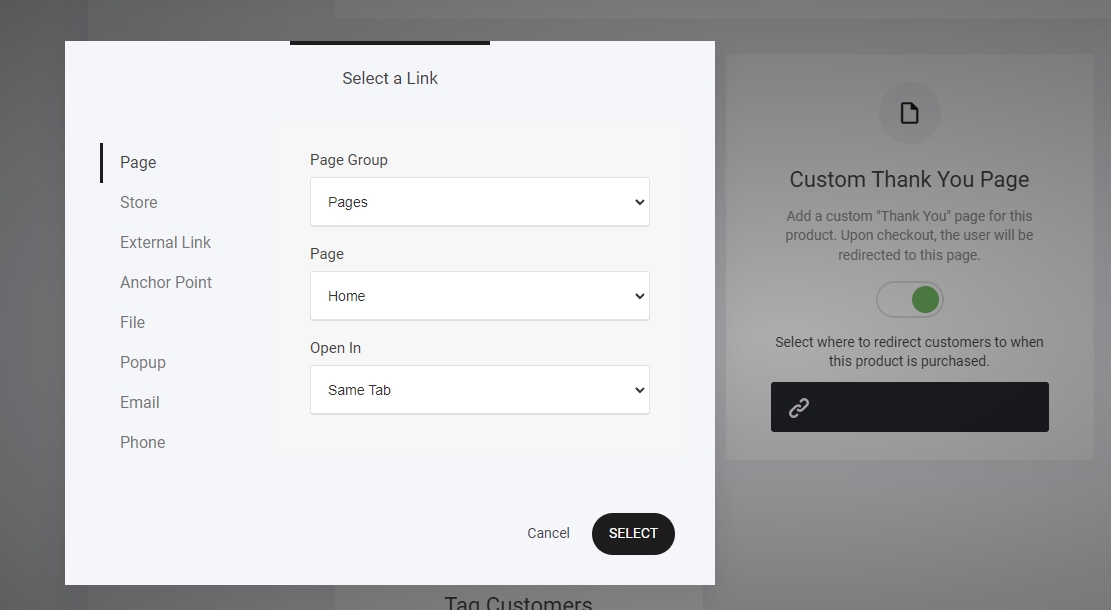 If you required the user to go to a specific page within your site or outside > Select this option and add your destination url as shown below.