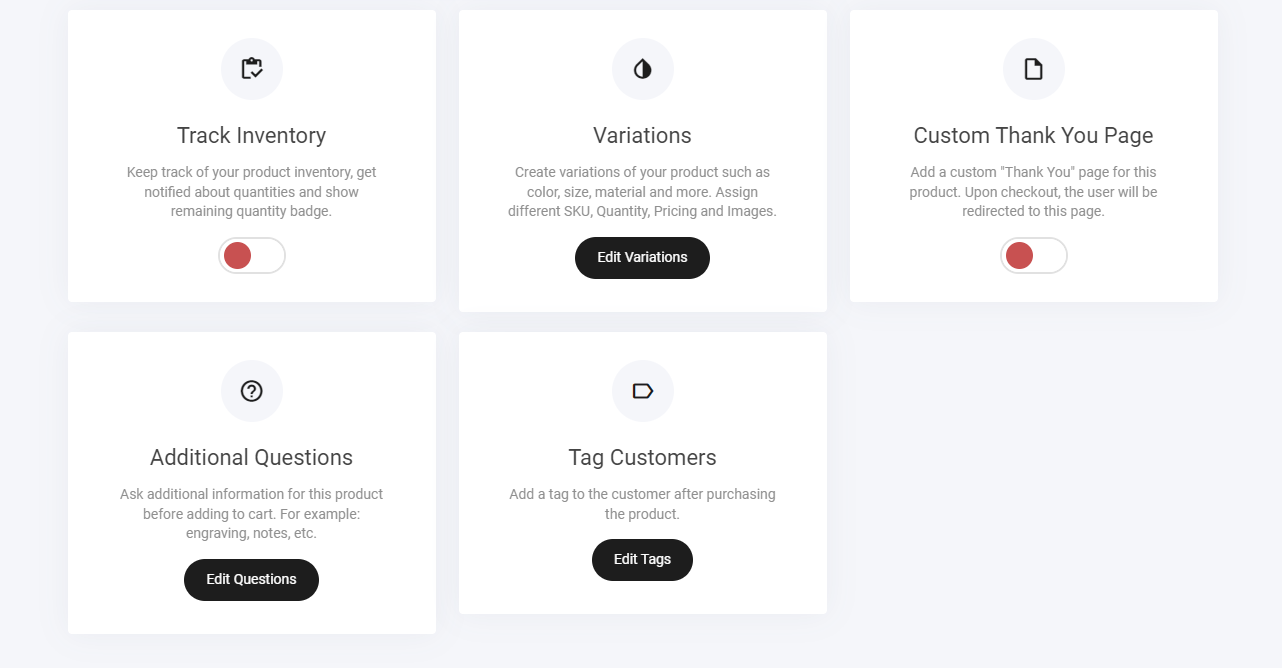 Now that you have created your product, you can now start adding the finer details from inventory tracking to adding tags for retargeting.