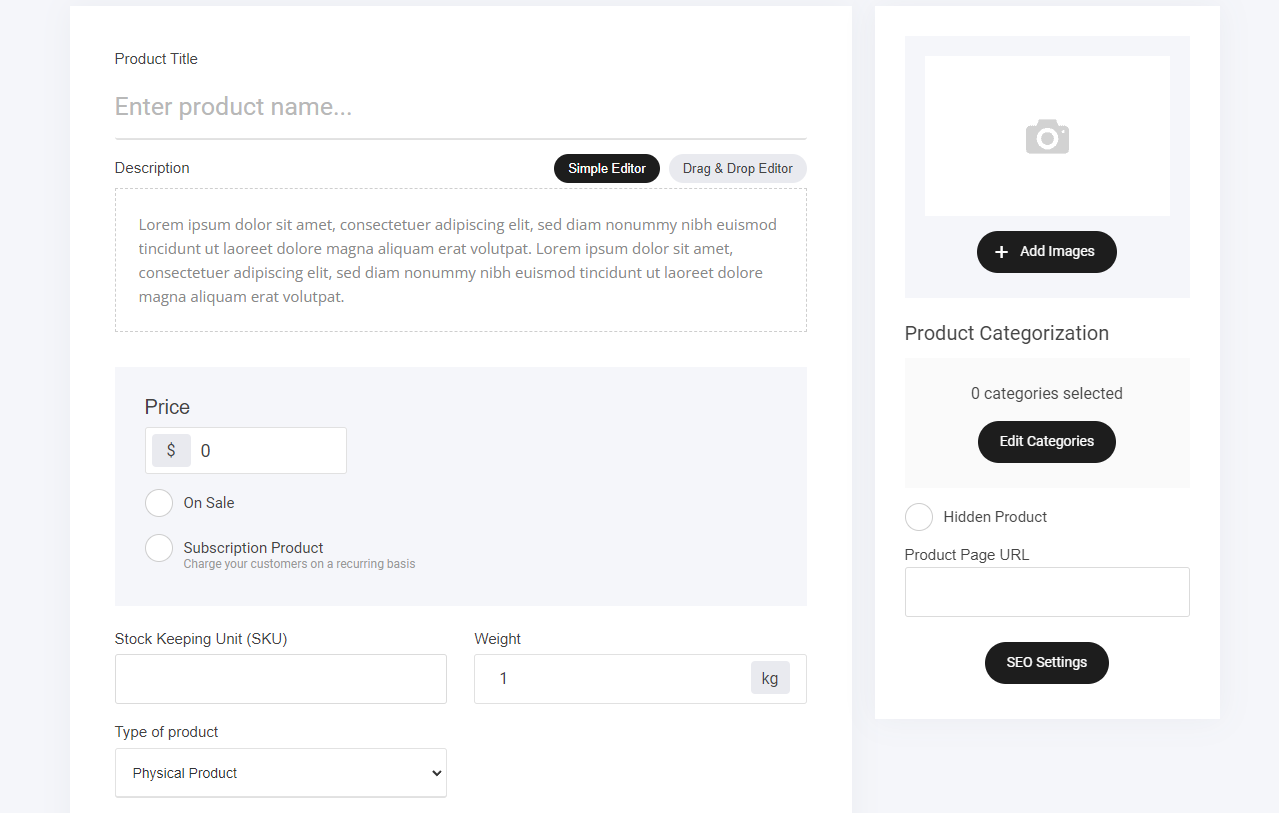 Click "Create New Product" – Begin adding your items with customizable details.