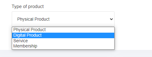 Product type 'Digital/Physical/membership/service'