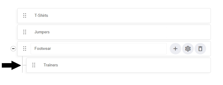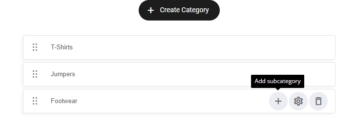 To add a sub-category to your main category, simply select the + icon as shown below