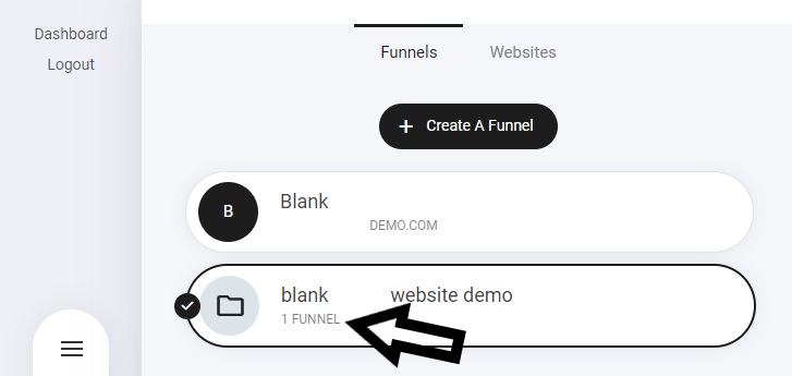 As displayed your contents is broken down into two tabs - Funnels | Websites
