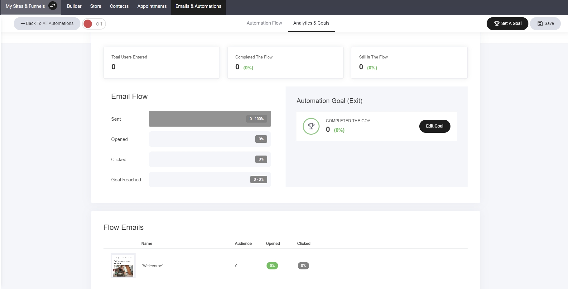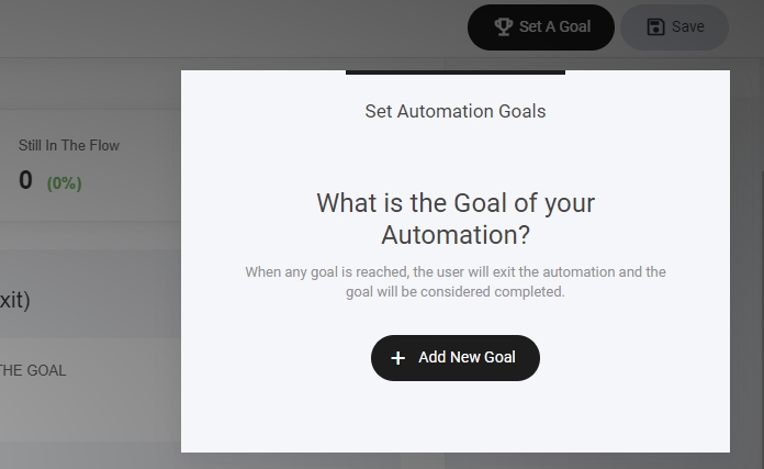 Setting goals will help you gauge if your automation is successful. When a subscriber reaches your specific goal it considers that as a win and registers it as a goal in your analytics dashboard. Once the user has reached your set goal, they will be removed from that automation.