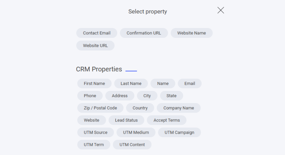 Also all CRM properties that can be added to the email too. Note if you have any custom properties you have created they will be listed here too.