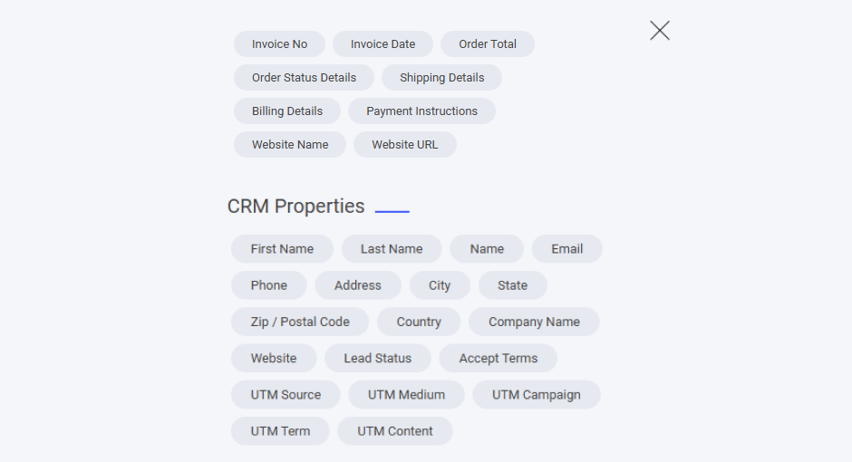 System Fields – Website name, order summary, and allocated fields.