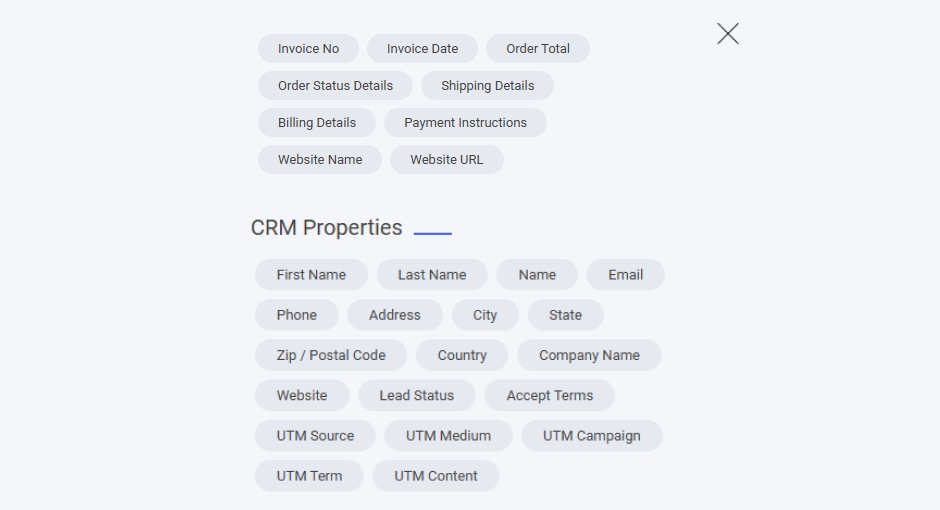Also all CRM properties that can be added to the email too. Note if you have any custom properties you have created they will be listed here too.