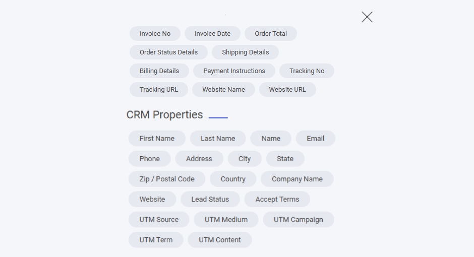 System Fields – Website name, shipping details, and allocated tracking fields.