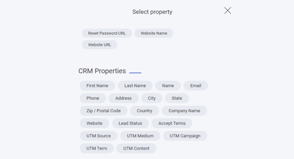 Also all CRM properties that can be added to the email too. Note if you have any custom properties you have created they will be listed here too.