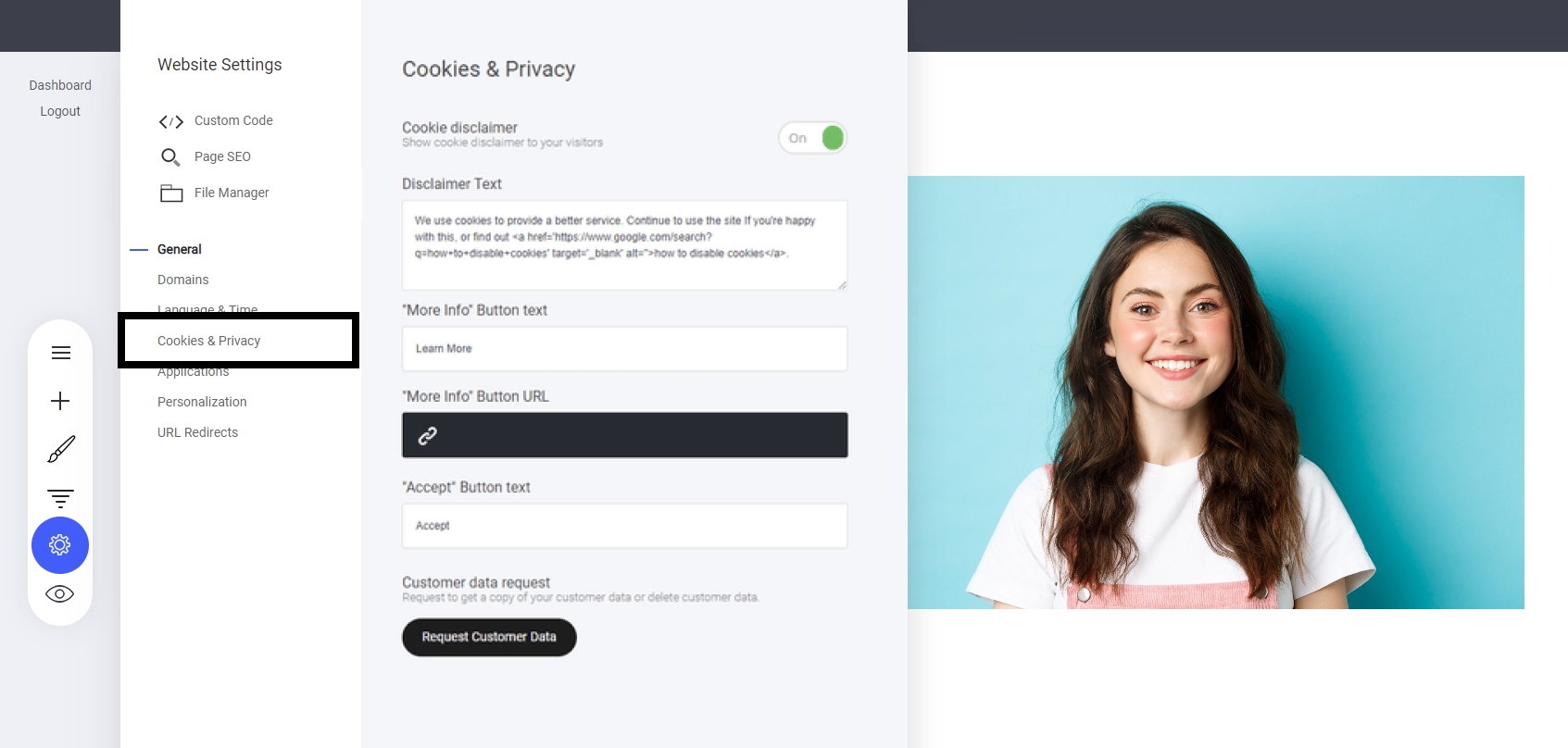 Enable the Cookie Disclaimer – Toggle the setting to display a disclaimer on your website.