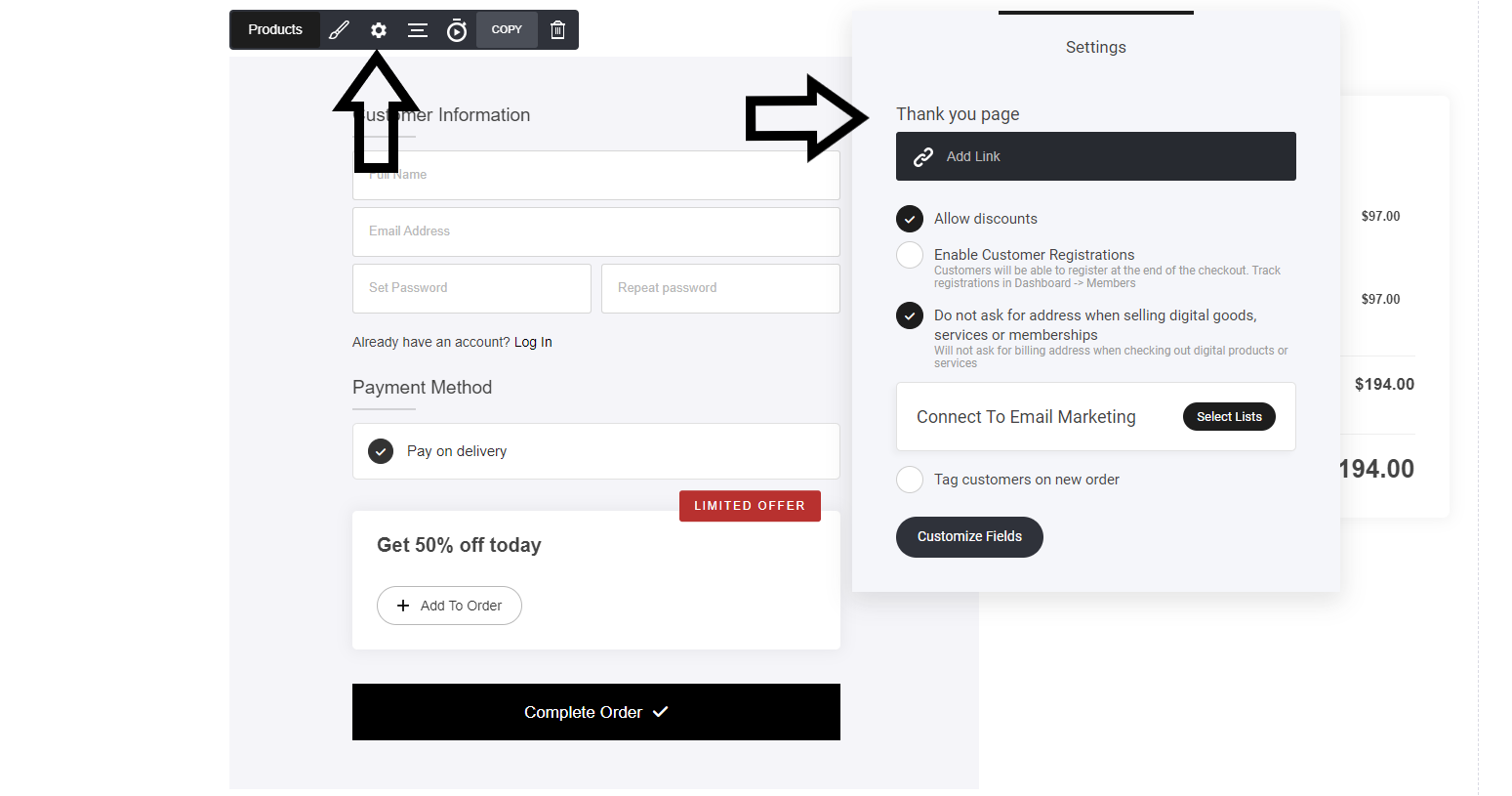 Connect to email marketing: Once the customer has purchased you can add them to your email list, or if you an outside provider for example MailChimp, then you can add them to your preferred MailChimp list.
