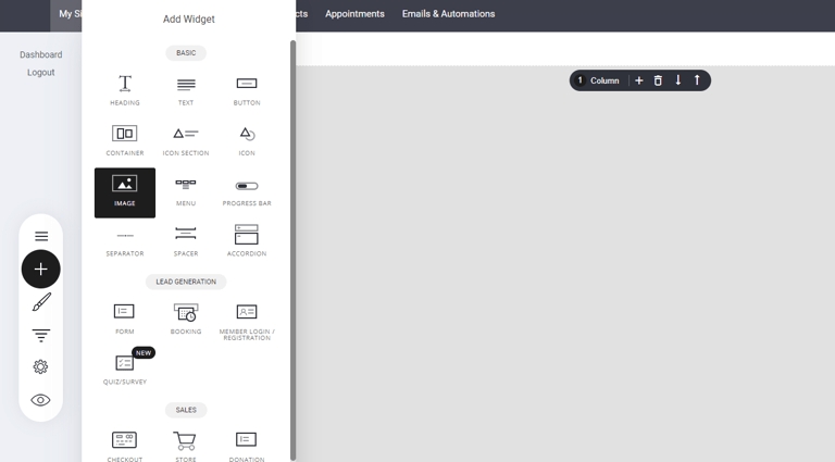 Once you have selected your image and placed it on the page, head to the image settings tab. Here you can add image descriptions 'great for SEO', Shadowing, image captions and call to actions.