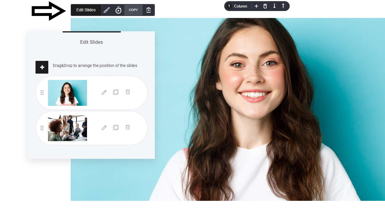 The slider widget is similar to the gallery widget, but has more features like adding text and also call to actions to your images and videos.