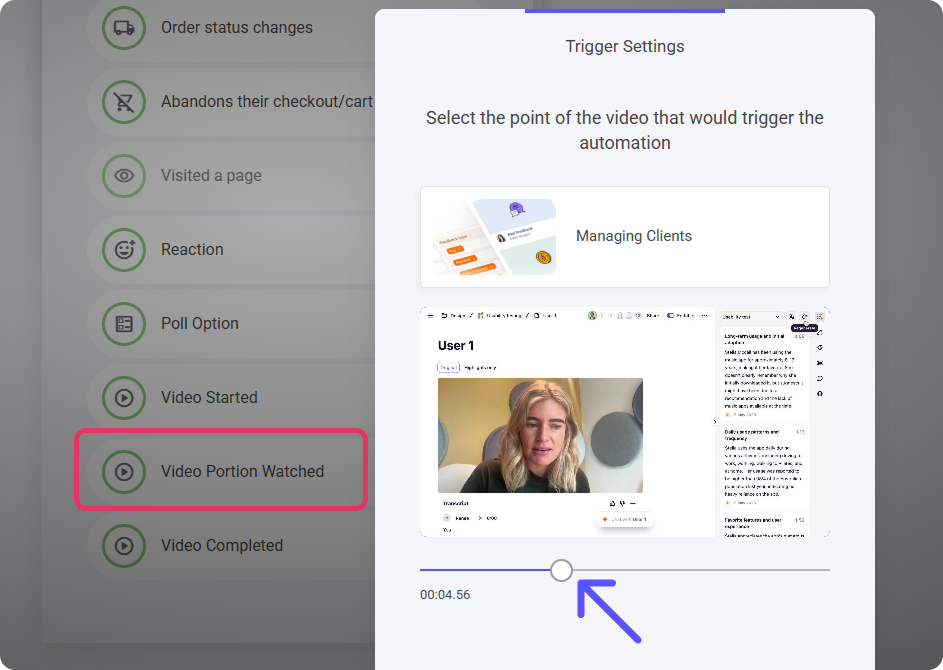 This trigger allows you to activate automations when a viewer watches a specific portion of a video.