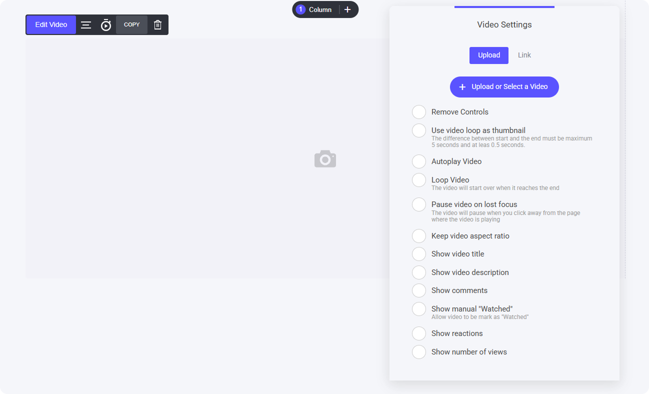 Video ManagerCustomizing Your Video Display Once you've uploaded your video, you can fine-tune how it appears with several built-in options. Adjust playback controls, visibility settings, and engagement features to match your needs.