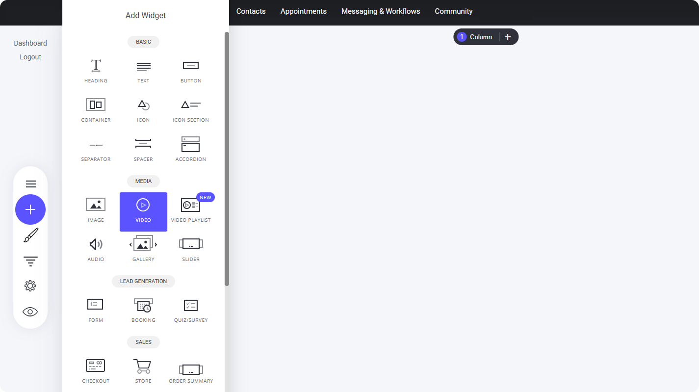 Once you’ve placed the video widget, a sidebar window will appear, giving you the option to: