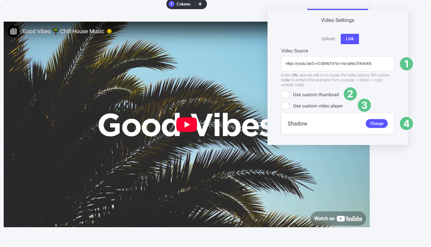 Once you’ve added your video URL, you can refine how it appears using the following options: